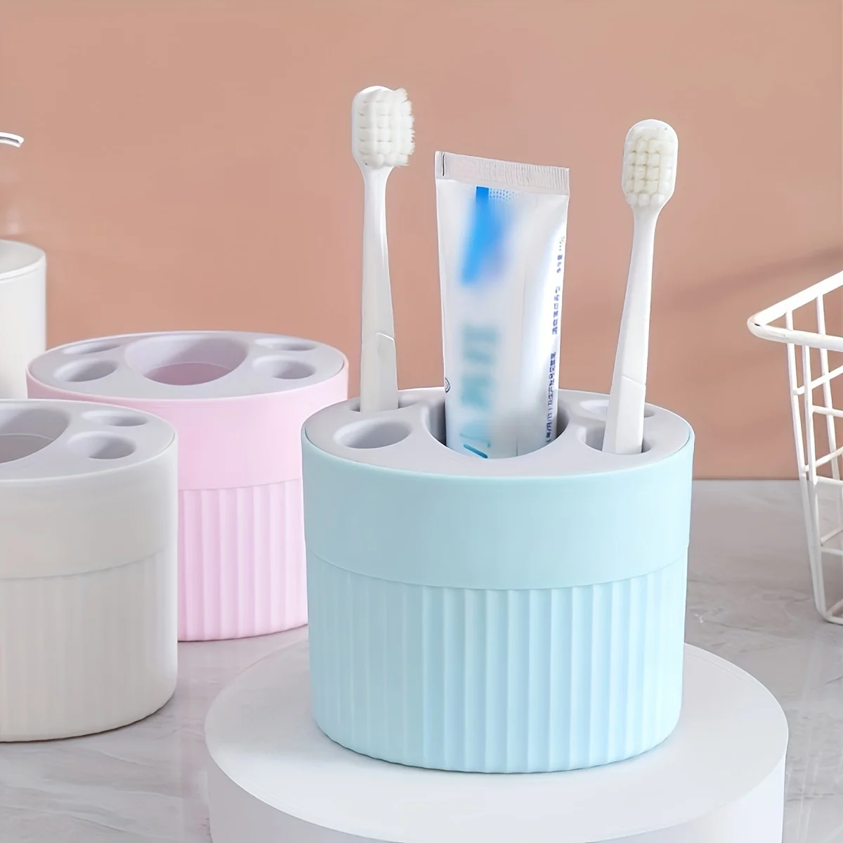 4 Slot Toothbrush Holder ABS Plastic Bathroom Organizer Freestanding Toothpaste Stand with Drain Holes for Home Gift Festival